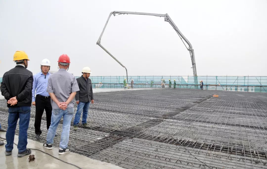 共展宏圖 上海威貿電子的新家園已初現容貌,壯觀(guān)的外景、蜿蜒的天井回廊、寬敞明亮的大廳都讓我們更加迫不及待的期待竣工的那一天。 隨著(zhù)身后一斗斗混凝土的澆灌,威貿電子全新的辦公大樓將順利完成封頂! |
