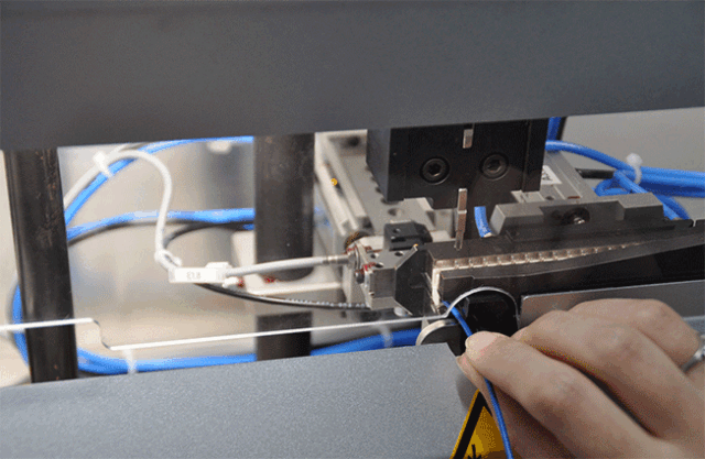 這臺來(lái)自德國的設備讓威貿的小伙伴們操作更輕松、更穩定。我們只需將電線(xiàn)放入設備的壓接槽中,感應器自動(dòng)定位并壓接,一條完整的線(xiàn)就出來(lái)啦! | ||