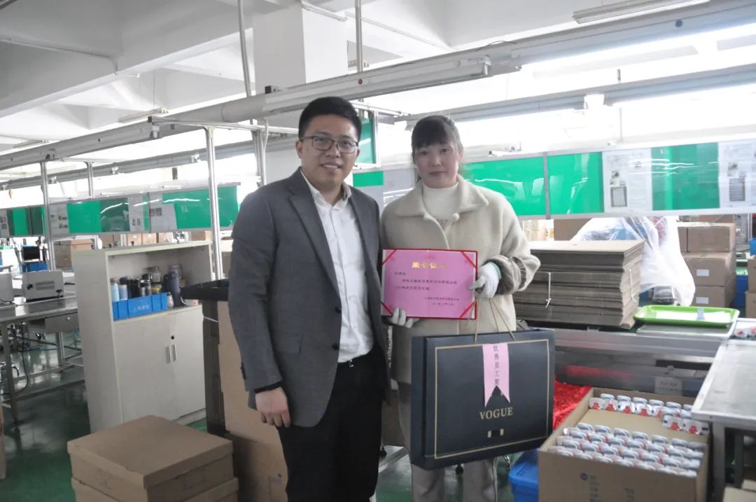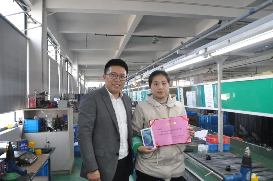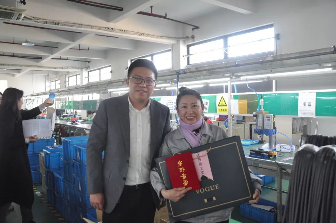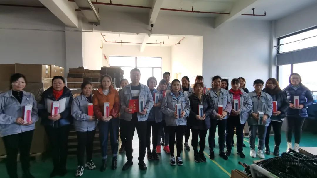 午餐過(guò)后,我們還舉行了一場(chǎng)特別頒獎盛典,今年共設定了包括忠誠獎、全勤獎、優(yōu)秀員工獎、進(jìn)步獎等8個(gè)特別獎項,獲獎人員達到101人之多。公司周董秘帶領(lǐng)人事行政一行人員推著(zhù)獎品車(chē),親自到車(chē)間將獎品和獎狀親自送到每位獲獎人手中,送出的不僅是獎品和祝福,也是新的托付和期望。 | ||||