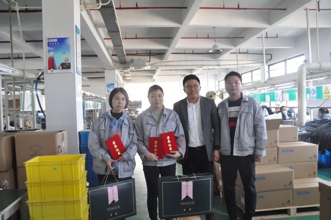 他們工作兢兢業(yè)業(yè),任勞任怨,全年考勤沒(méi)有一次遲到、早退、請假、曠工現象,他們不愧為威貿的全勤標兵,我們?yōu)樗麄兊膱皂g和執著(zhù)喝彩!獲獎員工有陳彩紅等共6名員工。 | ||||