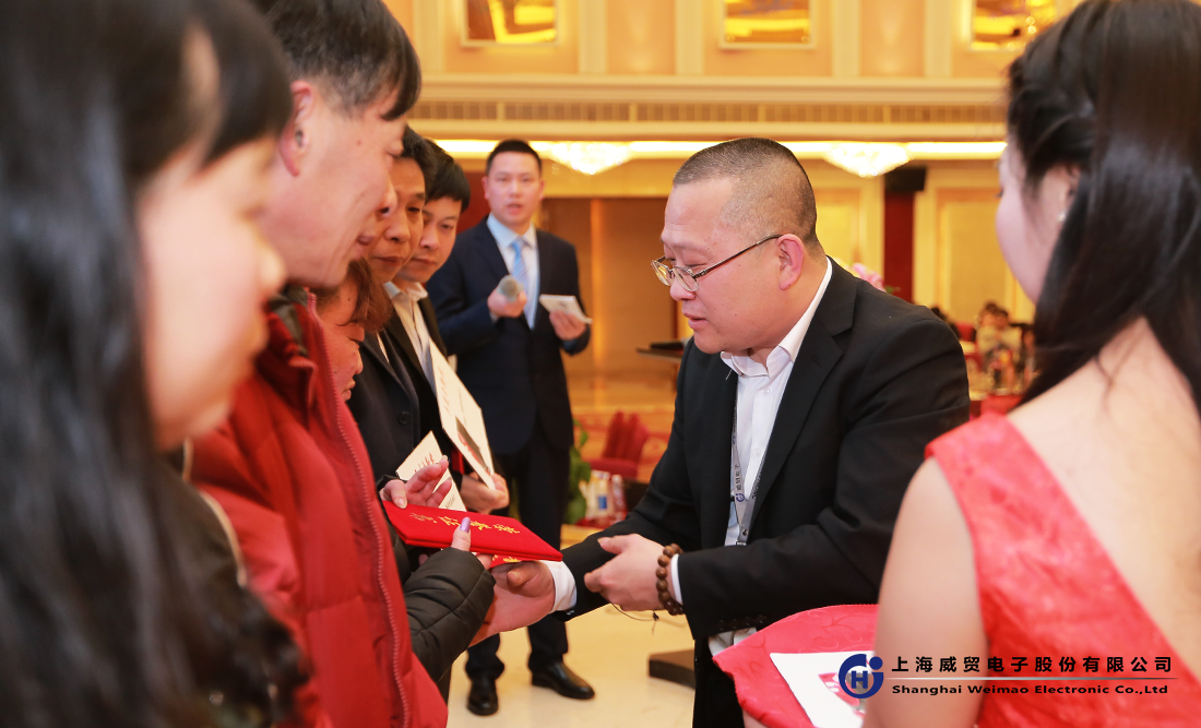 周總發(fā)言過(guò)后,頒獎典禮開(kāi)始。5個(gè)獎項,28名獲獎人,他們個(gè)個(gè)兢兢業(yè)業(yè)堅守自己的崗位,在過(guò)去的一年里嚴以律己,不斷對自己的能力進(jìn)行提升,創(chuàng )造更多的個(gè)人價(jià)值。為感恩他們對威貿的付出,公司領(lǐng)導為他們頒發(fā)了榮譽(yù)證書(shū)和獎品。
