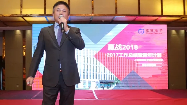 威貿電子董事長(cháng)周豪良先生上臺為大家致開(kāi)幕詞,總結2017成果并發(fā)表2018新年計劃。2017年,威貿產(chǎn)值15000萬(wàn)元左右,創(chuàng )歷年最高。在質(zhì)量方面,公司整體客訴率下降16.45%,客戶(hù)滿(mǎn)意度從前三年的78%提升到90.6%