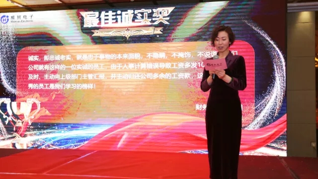 威貿電子副總經(jīng)理高建珍女士上臺主持本次生日會(huì ),帶頭為2月生日的員工送上了最美好的祝愿。當臺上臺下祝福生日的歌聲融匯成一片時(shí),這一刻無(wú)疑是最溫馨,最能體現“威貿一家人”企業(yè)風(fēng)格的瞬間。