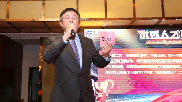 此外,在進(jìn)入會(huì )場(chǎng)前,公司董事會(huì )秘書(shū)周威迪為每位到場(chǎng)的威貿人贈上另一份驚喜——威貿定制Ag.999銀制徽章。