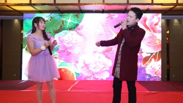 晚宴開(kāi)始前,周總、高總、周董秘、蔡副總帶領(lǐng)各部門(mén)領(lǐng)導上臺祝酒。周總為大家送上了新年祝詞。同時(shí)我們也感恩周總、高總給予了我們一個(gè)美好的工作環(huán)境。在無(wú)盡的祝福和掌聲中,我們迎來(lái)了晚會(huì )的第一個(gè)節目:
