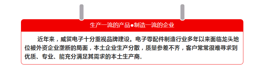 配合試點(diǎn)工作要求,威貿提出了“打造專(zhuān)業(yè)、專(zhuān)注的一站式頂尖電子零配件制造商企業(yè)形象”的品牌培育目標。公司新成立企劃部和以其為主體的品牌培育管理辦公室專(zhuān)職策劃實(shí)施品牌培育工作,建立了由總經(jīng)理領(lǐng)導、品牌培育管理辦公室負責、各部室具體執行的品牌培育管理模式,全面調動(dòng)公司內外資源,落實(shí)各部門(mén)品牌培育相關(guān)工作。